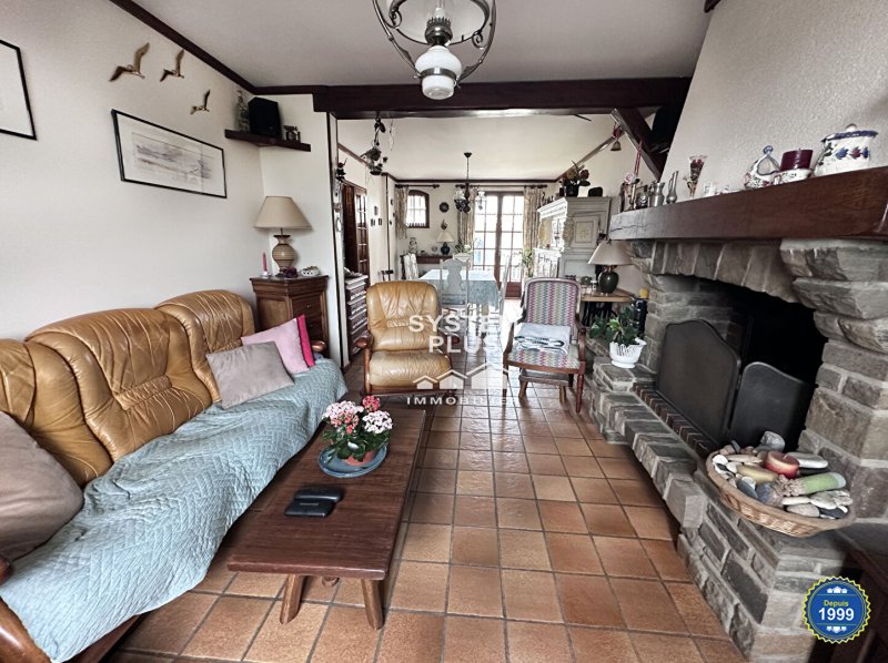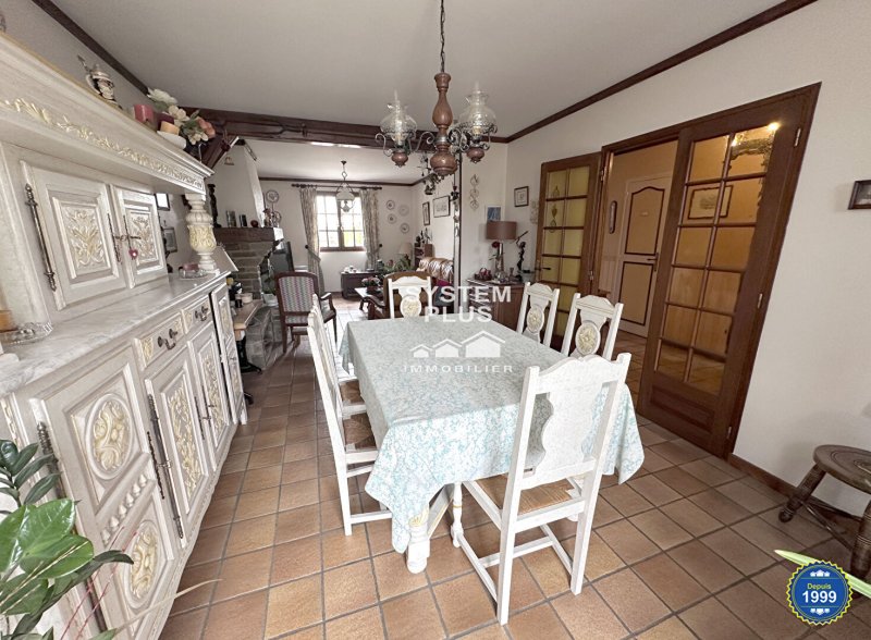 Maison individuelle élevée sur sous-sol total comprenant au rez-de-chaussée ; hall d'entrée, placards, cuisine séparée équipée et aménagée, séjour double avec cheminée, chambre avec espace lavabo, wc séparés.