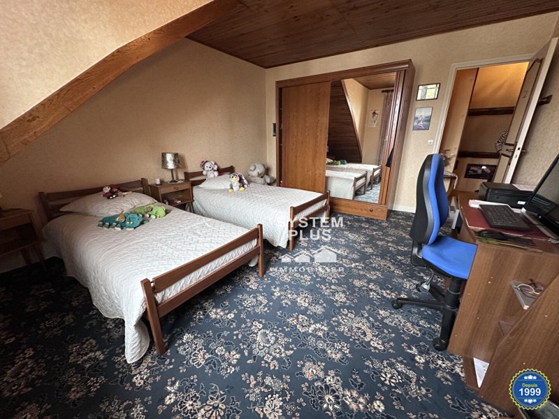 Au 1er étage ; palier desservant 2 grandes chambres, bureau ou chambre d'enfant, salle bains, wc séparés.