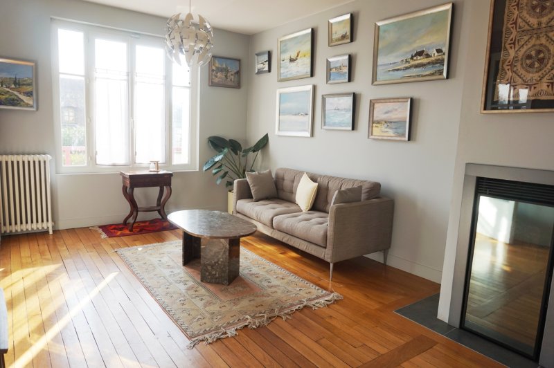 Située au coeur du centre ville, maison lumineuse offrant de très belles prestations. Hall d'entrée, séjour double avec poêle à pellets, cuisine avec accès de plain pied à la terrasse, wc. Au 1er étage : palier desservant 2 grandes chambres, bureau, salle de douche. Au second étage : suite parentale de 40 m2 avec salle de bains et douche (possibilité de la diviser en 2 chambres). Sous-sol total et garage indépendant.