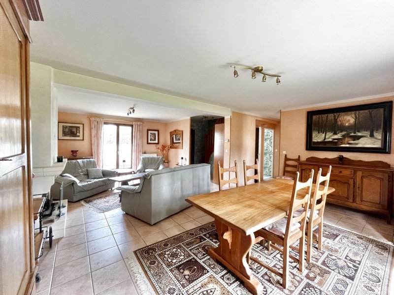 Maison individuelle construite en 1997 en excellent état, sur un beau terrain de plus de 1400 m2. Au rez de chaussée : entrée, séjour à la double exposition avec une cheminée, cuisine séparée (possibilité de l'ouvrir sur le séjour) et arrière cuisine, une chambre avec salle de douche, toilettes. Au premier étage : un palier distribue quatre chambres dont une suite parentale avec une salle de bains, une salle de bains, toilettes. Garage attenant de 38 m2. La maison est construite sur une cave compartimentée et carelée : un atelier, une cave, une salle de jeux et un bureau. Terrasse au sud sans vis-à-vis, terrain plat et clos. Ecoles à 5 minutes à pied. Contactez nous au 01 34 85 28 21