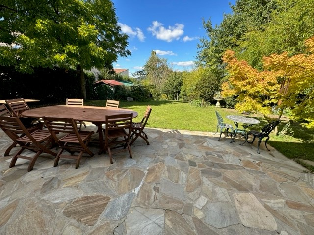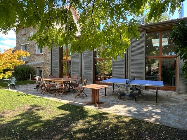 BURES-SUR-YVETTE -- Une maison de caractère dans un écrin de verdure. À seulement 5 minutes à pied de la gare RER B, des écoles et des commerces, accès très rapide à la N118 et l'A6, découvrez cette demeure pleine de charme mêlant meulière authentique et extension contemporaine en bardage bois. Implantée sur un superbe terrain arboré de 905 m2, elle offre 188 m2 habitables et des volumes rares, dont un séjour cathédrale de 54 m2, prolongé par une mezzanine lumineuse et une cuisine équipée, deux chambres dont une avec un dressing, un bureau, une salle d'eau, un water-closet, ainsi qu'une buanderie. À l'étage : un palier dessert deux chambres supplémentaires et une salle de bains. Un atelier et un garage à moto complètent ce bien unique. Chauffage au gaz de ville avec une chaudière à condensation neuve par radiateurs sur la partie en meulières et plancher chauffant sur l'extension. Un lieu de vie d'exception, alliant charme, espace et proximité.