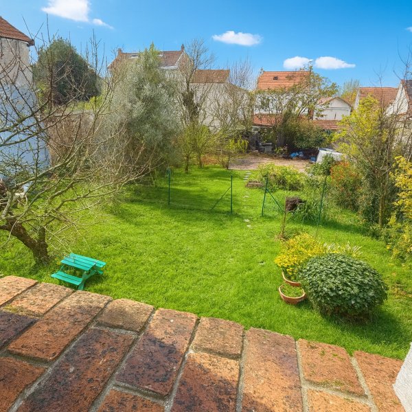 Le séjour bénéficie d'une exposition Ouest et de grandes baies vitrées, apportant une belle luminosité et une vue dégagée sur le jardin.