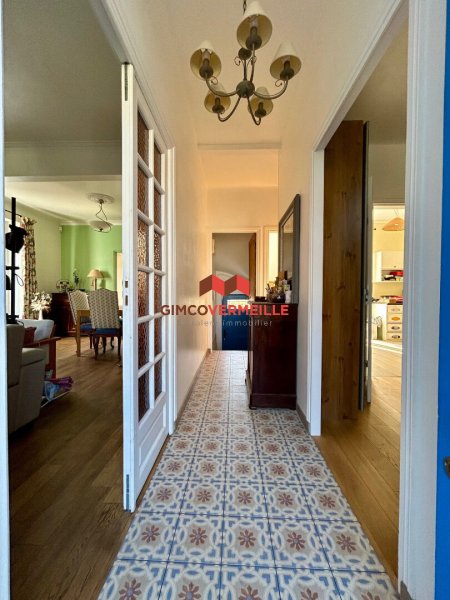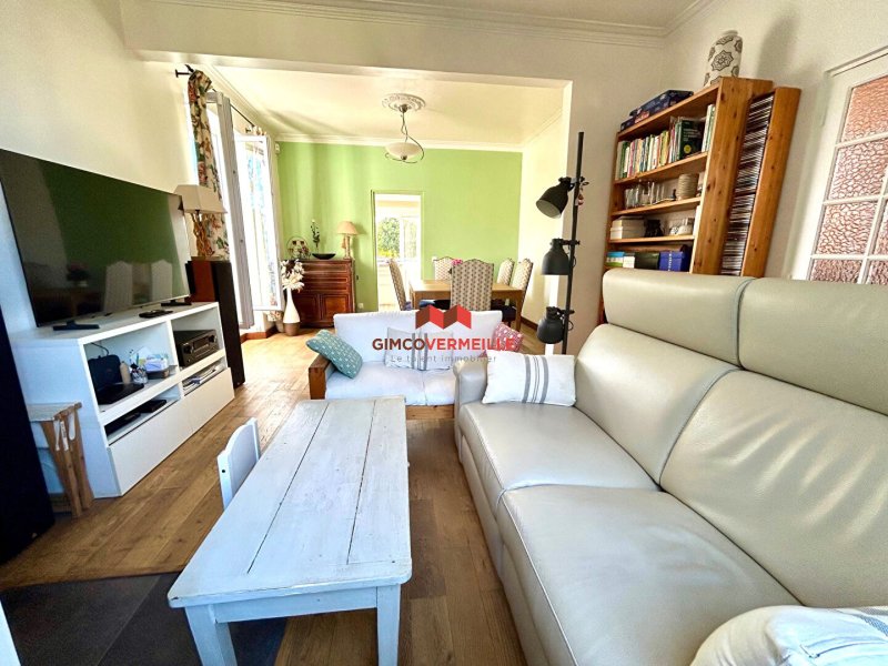 Édifiée sur un terrain clos de 744 m², au calme et sans vis à vis, maison des années 30 sur sous-sol comprenant : entrée, double séjour avec cheminée, cuisine aménagée équipée, deux chambres. A l'étage : palier, deux chambres, un bureau, une salle de bains + douche, un dressing. Sous-sol total. Studio indépendant. 2 garages. Maison en parfait état. Une nouveauté Gimcovermeille.