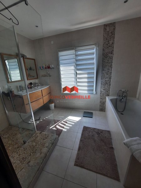 À l'intérieur, vous trouverez une cuisine américaine aménagée et équipée, ainsi qu'un séjour lumineux de 50 m² exposé Est-Ouest, idéal pour profiter de la lumière naturelle tout au long de la journée. La maison est équipée d'un système de chauffage mixte (sol et convecteurs) avec une pompe à chaleur, garantissant un confort optimal. Vous disposerez également de 2 salles de bain, 1 salle d'eau et 3 WC, ainsi qu'une chambre au rez-de-chaussée.