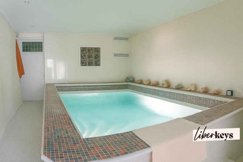 Derrière sa façade discrète, cette bâtisse sur quatre niveaux combine prestations rares et charme de village. Dès le rez-de-chaussée, un hall d'entrée vous conduit vers une piscine intérieure chauffée, avec nage à contre-courant et espace massage. S'ajoutent un grand garage, un local technique et une cave.