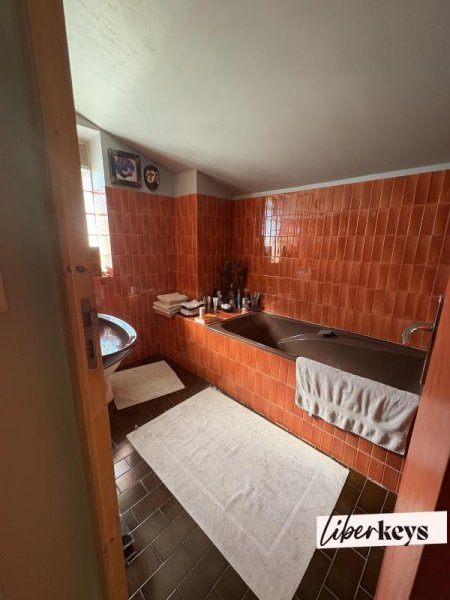 - En haut de l'escalier, 1 grande chambre et une salle de bains avec toilette.
