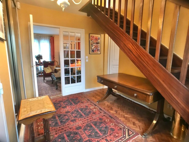 Très proche du centre-ville, maison de 122 m2 habitables (147 m2 au sol) sur un terrain de 440 m2 : entrée, double séjour avec cheminée, salle à manger, cuisine, toilettes, cellier, cave. A l'étage : trois chambres dont une avec une salle d'eau, un bureau, une salle de bains, toilettes. Combles aménagés (2 pièces). Chauffage électrique, double vitrage PVC, volets roulants. Séjour orienté au Sud. Terrain clos, au calme. A pied des commodités : commerces, écoles, bus pour les transports en commun et le lycée. Possibilité de rentrer deux voitures dans la propriété. Contactez nous au 01 34 85 28 21