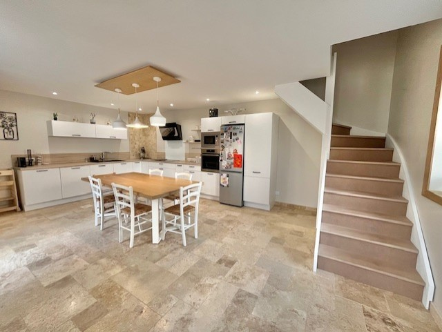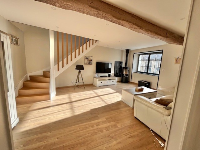 Dans le centre du village, à pied des commerces et des écoles, au calme, belle maison ancienne rénovée récemment avec des matériaux de qualité : vaste salle à manger avec cuisine équipée (31 m2), un salon avec poêle à bois, une chambre, une salle de bains, toilettes. A l'étage, deux belles chambres dont une avec une salle de douche et des toilettes, un bureau. Cette maison de 110 m2 habitables environ a sous une partie un sous-sol de 60 m2 comprenant un garage, une buanderie, une pièce pouvant servir d'atelier. Cour et débarras. Travaux récents : cuisine, sanitaires, isolation totale (murs et toiture), huisseries en Alu, ... Beaucoup de charme, luminosité et belles prestations. Contactez nous au 01 34 85 28 21