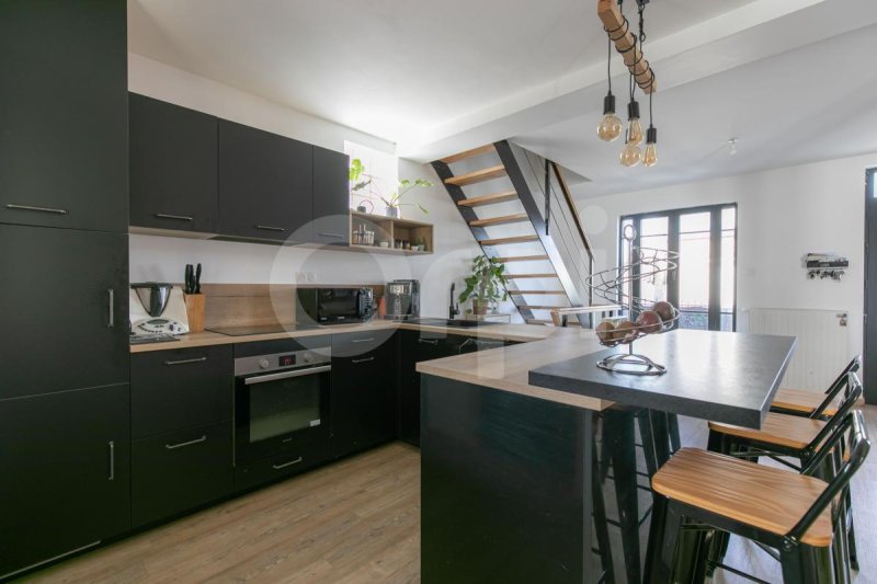Maison ancienne de 5/6 pièces entièrement rénovée sur une parcelle de 300m² environ. Venez la découvrir, l'entrée se fait directement par le séjour avec cuisine équipée ouverte, terrasse, dégagement, salle d'eau, WC. Au premier étage palier, trois chambres, salle d'eau, WC. En sous-sol une chambre, chaufferie, buanderie, cave. Décoration récente et soignée. Le jardin est agréable avec une possibilité d'ouvrir un deuxième portail sur rue.