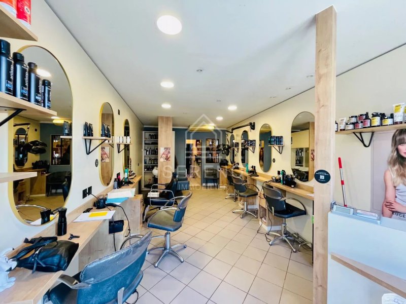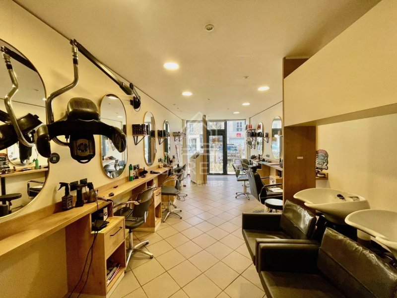 En rez-de-chaussée, local commercial, façade de 3 m, coiffure et soins capillaires de 27 m2 en parfait état, arrière-boutique de 16,5 m2 avec kitchenette, toilettes (1,37 m2), laboratoire, vestiaire, donnant accès à une cave de 19,55 m2.