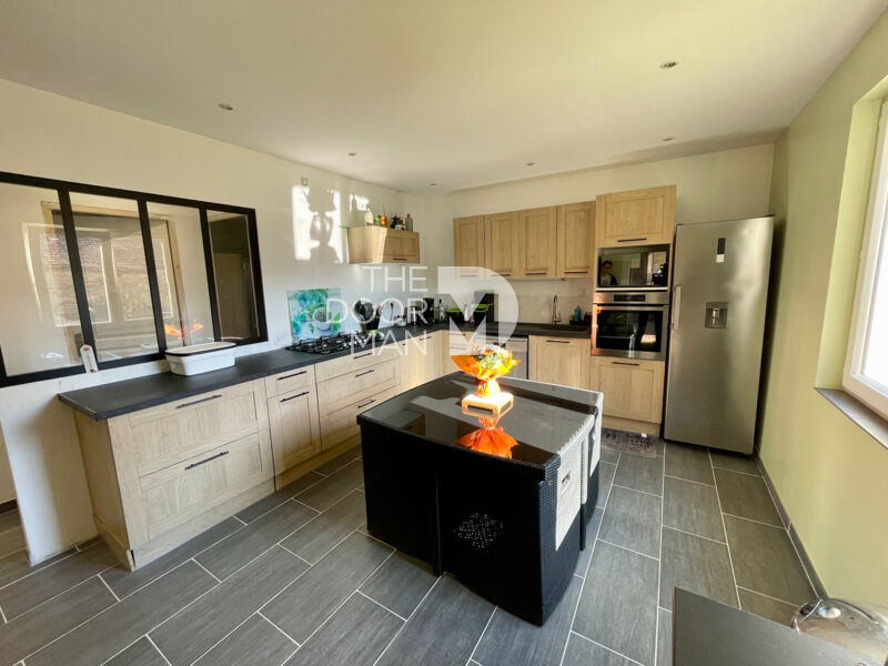 Dès l'entrée, vous serez séduit par une cuisine équipée ouverte sur un vaste séjour double de plus de 50 m², lumineux et chaleureux, agrémenté d'un poêle à granulés neuf et donnant accès à un balcon idéal pour profiter des beaux jours.