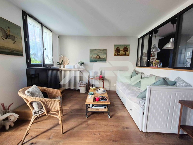 Au rez-de-chaussée, vous serez séduit par un spacieux séjour double de 30 m², baigné de lumière, qui s'ouvre sur un joli jardin et une terrasse, parfaite pour profiter des beaux jours. La cuisine, aménagée et équipée, partiellement ouverte sur le séjour, apporte une touche de modernité et de convivialité. Ce niveau comprend également des toilettes et une buanderie.