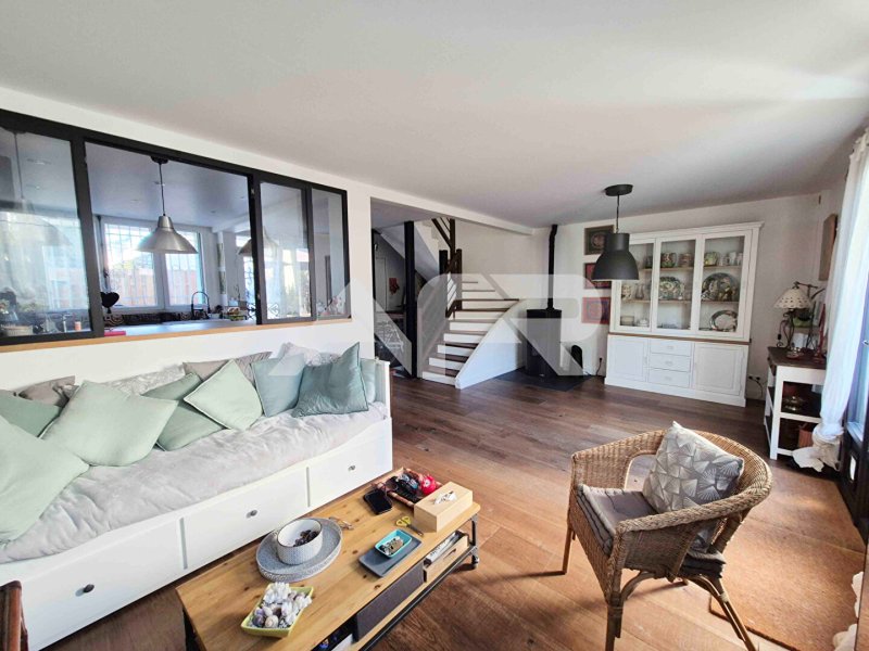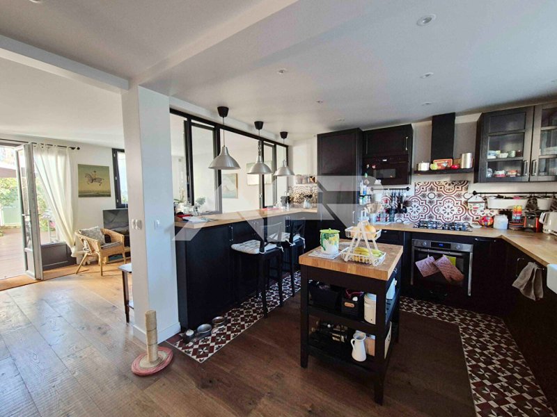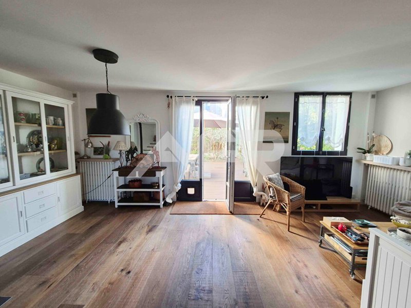 Au rez-de-chaussée, vous serez séduit par un spacieux séjour double de 30 m², baigné de lumière, qui s'ouvre sur un joli jardin et une terrasse, parfaite pour profiter des beaux jours. La cuisine, aménagée et équipée, partiellement ouverte sur le séjour, apporte une touche de modernité et de convivialité. Ce niveau comprend également des toilettes et une buanderie.