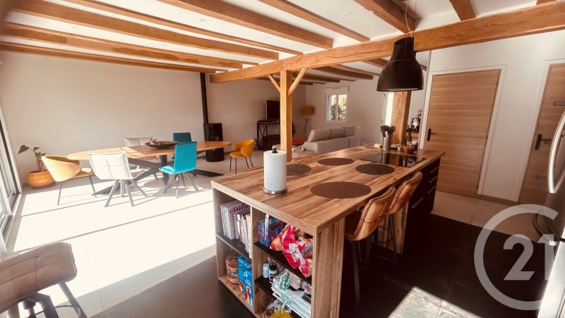 Dès l'entrée, vous serez séduit par une pièce de vie exceptionnelle de 65 m², baignée de lumière, avec cuisine ouverte et poêle à granulés, idéale pour des moments chaleureux en famille ou entre amis.