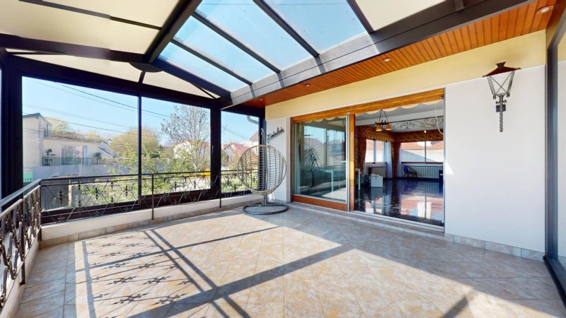 Sur le premier niveau : Une spacieuse entrée dessert un grand séjour de 60m2 avec sa cheminée, une grande baie vitrée donnant l'accès à la véranda et à la terrasse au calme et sans vis-à-vis, exposée sud-est. Les pièces de vies sont baignées de lumière et la cuisine pourrait être ouverte sur le séjour !