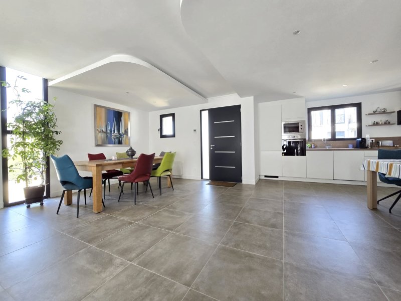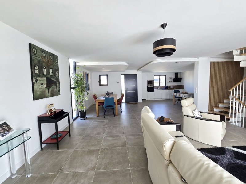L'agence GINDRA vous propose de venir visiter cette maison indiciduelle neuve de 169m2 habitables qui vient juste d'être achevée ! Cette maison se décompose ainsi : Au RDC surélevé : Cuisine ouverte sur séjour formant ainsi un grand espace de vie tout ouvert d'environ 65m2 donnant sur un beau balcon puis sur le jardin exposé plein Sud. A l'étage, le palier dessert 4 belles chambres dont une suite parentale de plus de 22m2 avec sa salle d'eau et son WC, ainsi qu'une salle de bains et un WC séparé. En rez de jardin : Une suite parentale de plus de 20m2 avec accès direct au jardin, un garage avec porte électrique, un WC séparé et une buanderie / chaufferie. Cette maison non mitoyenne est construite sur un terrain clos de 380m2. La maison se trouve dans un quartier proche de toutes commodités, écoles, grandes surfaces, transports. Laissez vous séduire par le charme de cette maison moderne !