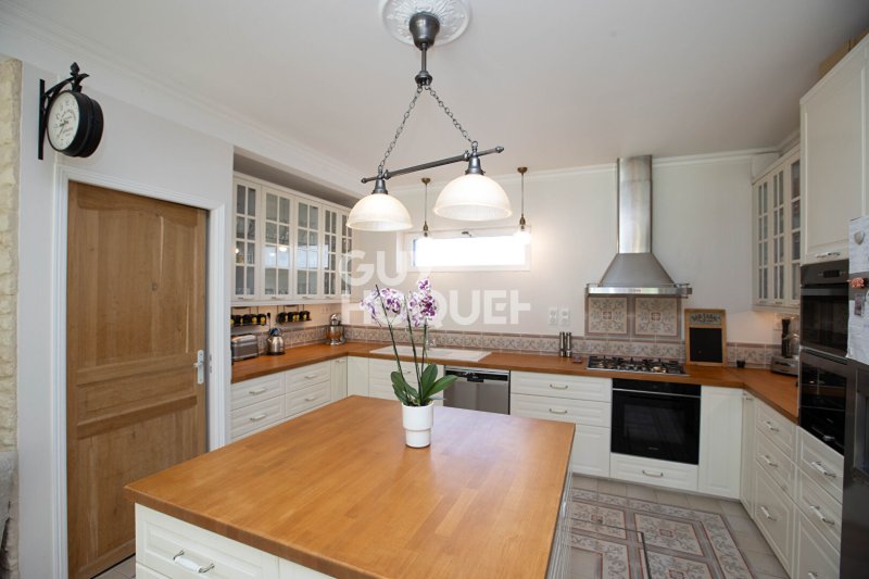 La cuisine ouverte s'intègre harmonieusement à cet ensemble et privilégie fonctionnalité et partage. Elle se complète d'une arrière-cuisine et dissimule un accès à une cave à vin. Un bureau, pouvant aisément faire office de chambre, des WC indépendants ainsi qu'un atelier viennent compléter ce niveau avec cohérence.