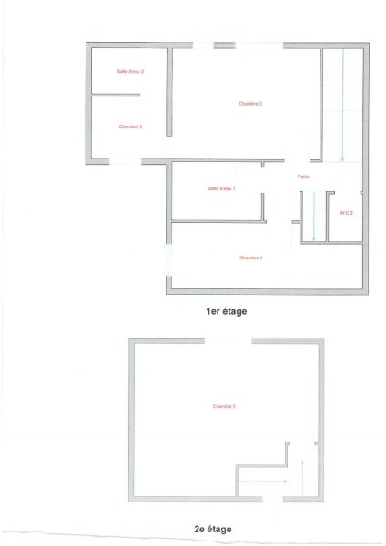 À l'étage, nous trouvons une suite parentale avec dressing et salle d'eau, une seconde chambre, une salle d'eau, des w.c indépendant. Au 2eme étage également une 4éme chambre.