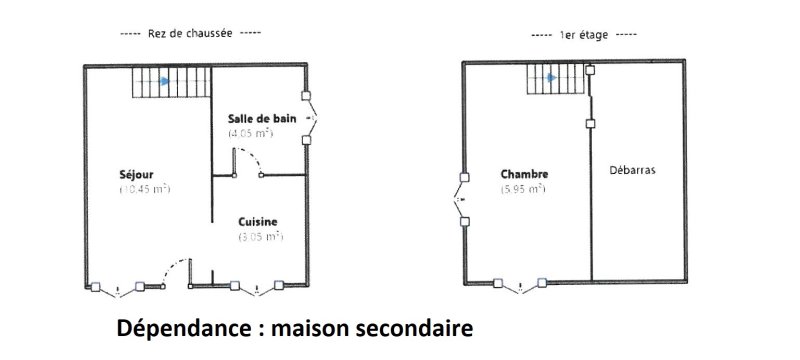 Accessible par le jardin ou directement depuis la rue, cette seconde maison comprend : Un séjour, une cuisine, une chambre et une salle de bains avec WC.