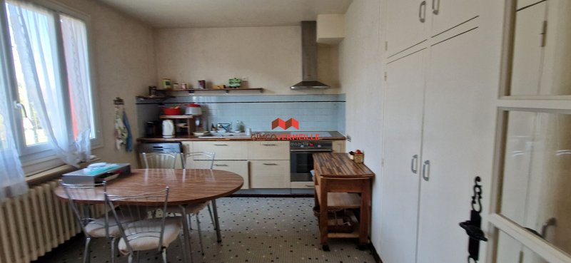 La maison est agencée sur deux niveaux, avec une cuisine aménagée, une salle de bain, une salle d'eau et trois WC, le tout dans un environnement calme. Les fenêtres en PVC double vitrage garantissent une bonne isolation. Bien que l'état général nécessite un rafraîchissement, le standing est bon et le style des années 60 lui confère un charme particulier.
