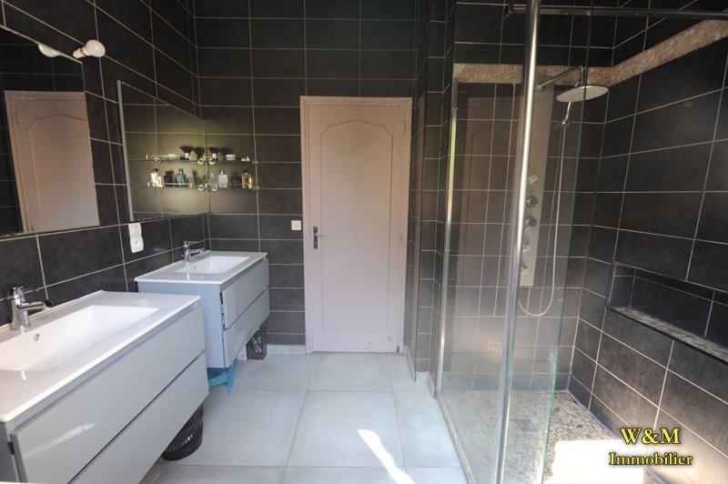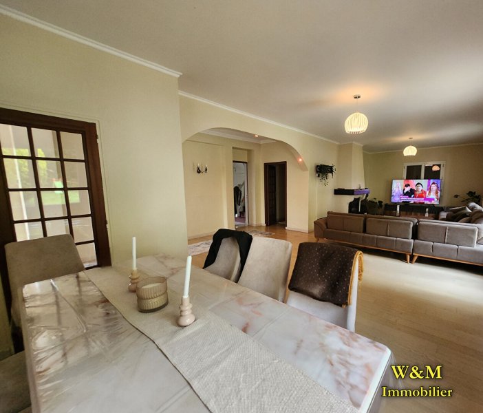 Séjour triple avec sa belle cheminée, grande cuisine équipée, 7 chambres, salle de bains, salle de douche, cave, buanderie, garage. Jardin de plus de 766m2 .