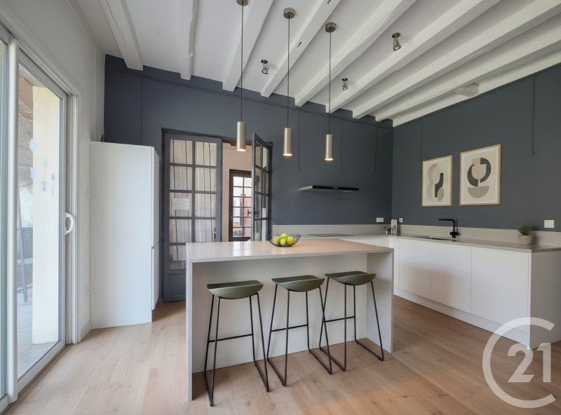 Elle comprend en RDC une entrée, un atelier à vocation de cuisine donnant sur une pièce de vie de plus de 30 m avec cheminée centrale et insert double face. L'ensemble du RDC desservant le jardin extérieur par de nombreuses portes fenêtres. Au 1 er étage : un plateau de 3 pièces supplémentaires déplafonnées (possibilité mezzanine) et facilement aménageables en grandes chambres + une pièce d'eau.