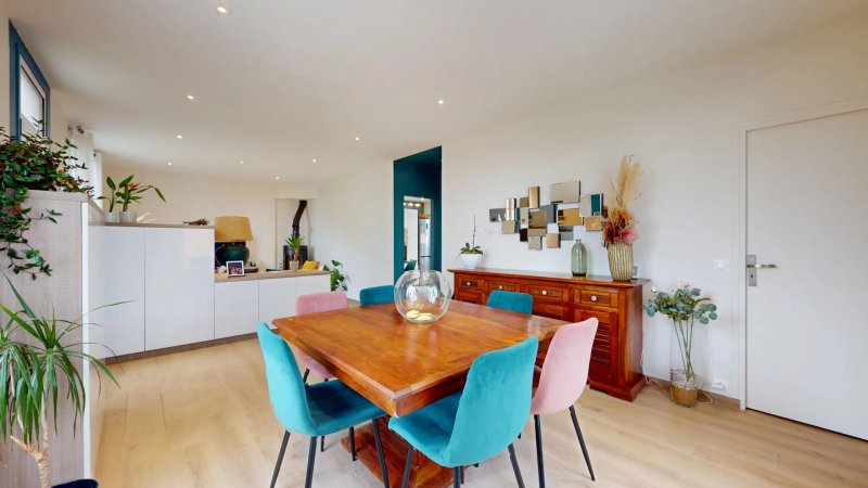 A l'étage, ce sont deux chambres supplémentaires, un bureau pouvant servir de quatrième chambre d’enfant, ainsi qu’une seconde salle d’eau avec toilettes.