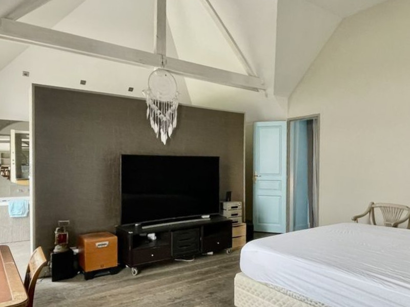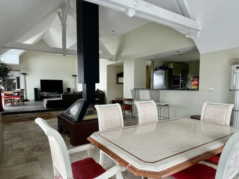 Les 232m² se décomposent ainsi : une double réception hauteur cathédrale donnant sur la terrasse, une cuisine aménagée semi ouverte, une suite parentale avec salle de bain et dressing et trois autres chambres, deux salles de douches et un espace de 70m² actuellement utilisé en zone de stockage.