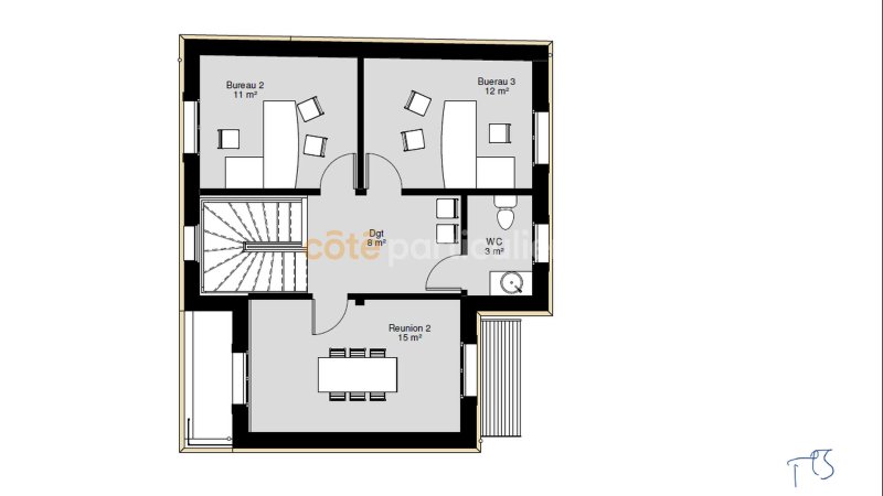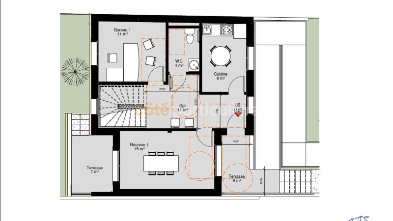 Possibilité usage tertiaire (professions libérales, bureaux, artisans).